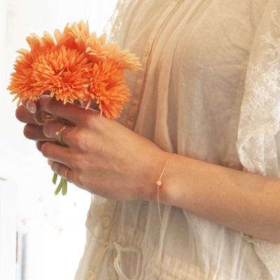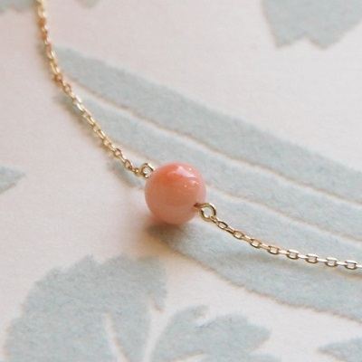 <Peach pink coral bracelet> ピーチピンクコーラルブレスレット 可愛らしい丸珠のピンクサンゴを一粒、ブレスレットにお留めし、華奢で可憐なブレスレットにお仕立てしました。 コロンとした丸珠サンゴはハワイ沖、ミッドウェイ諸島沖の深海で育った天然サンゴを使用。女性なら誰もが可愛い!と感じるベビーピンク。天然のサンゴが織りなす、なんとも言えない色の混ざり具合が神秘的で、海の世界を連想させる深海珊瑚。可愛らしい色と小粒の丸珠が女性らしさを感じさせてくれます。 ヨーロッパでは子どもや女性のお守りジュエリーとしてサンゴを身につけられているそうです。 可愛らしいけど、やっぱり本物を身につけたい!そんな大人の女性にピッタリの一品です。 3月の誕生石でもあるサンゴ。バースデーギフトとしてもオススメです! |