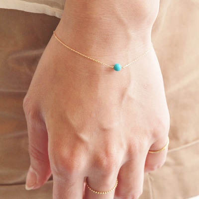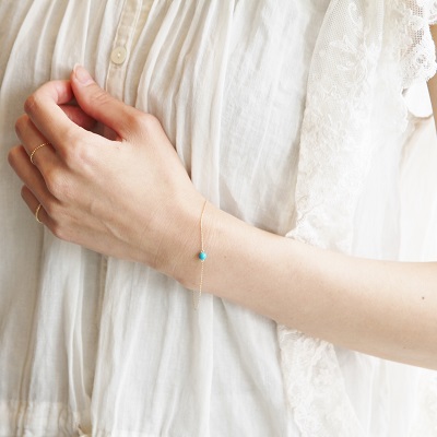 <Le ciel turquoise bracelet> ル・シエルターコイズブレスレット 鮮やかなスカイブルーの美しいターコイズがワンポイントのブレスレットが新登場! はつらつとした爽やかな印象のスカイブルーが思わず目に飛び込んでくる、大人可愛いブレスレットに仕上がりました。 ご注文いただきました商品は、熟練した宝石職人が1点1点手作業でお作りいたします。 旅のお守りや、災から身を 守るお守りとして身につけられて身につけられているターコイズ、また12月の誕生石でもあるターコイズ。バースデーギフトとしてもおすすめです! |