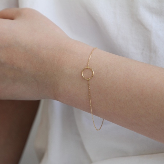プレーンな金線をサークル状にしたシンプルなブレスレット