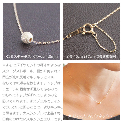 | <Duperey stardust ball pendant necklace> デュプレ―スターダストボールペンダントネックレス まるでダイヤモンドの輝きのようにキラキラと輝くスターダストボール。シンプルなペンダントネックレスにお仕立てしました。 細かく刻まれた凹凸が、光の反射でキラキラとK18ならではの輝きを放ちます。 特殊加工のスターダストボールは4.0mm珠を使用。小さすぎず大きすぎない、程よい存在感を感じられる大きさです。 トップはチェーンに固定せず通してあるので、つられてトップがずれてしまうのを防いでくれます。また、デコルでラインでクルクルと回ることで、よりキラキラと輝きます。 大人シンプルで上品!毎日身につけたいスキンジュエリーです。 |