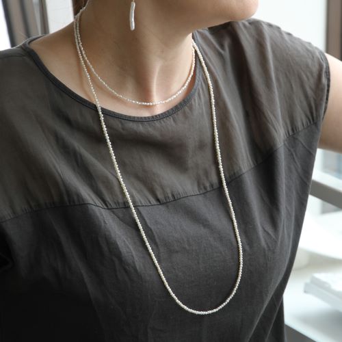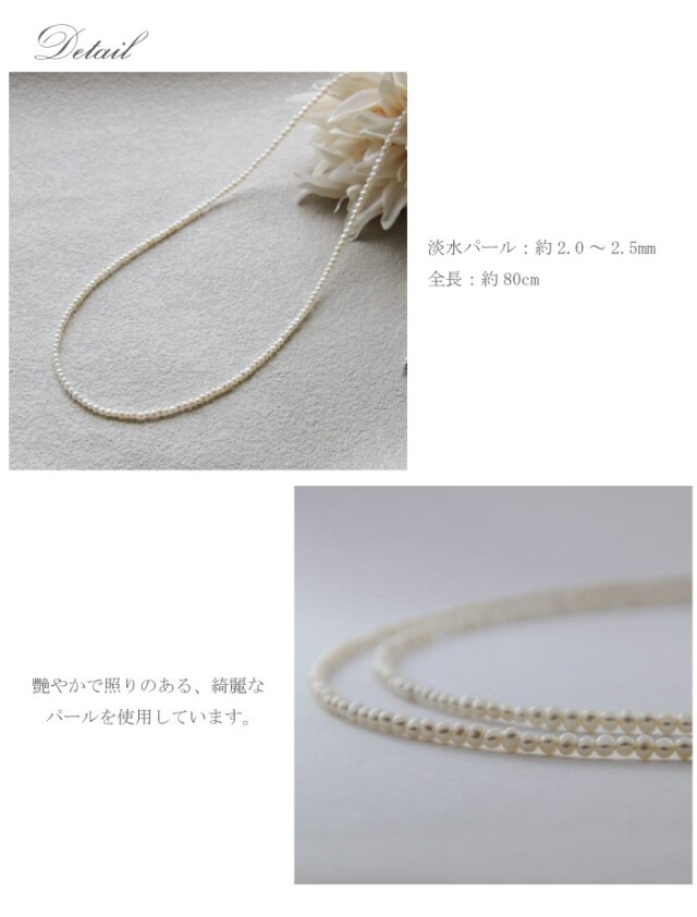 <SV925/K18 Little mermaid waterpearl long necklace> (リトルマーメイド淡水パールロングネックレス) 希少価値の高い小粒のベビーパールだけを繋いで、ロングネックレスにお仕立てしました。 小粒のパールは控えめで上品。さり気ないこなれ感を感じられるシンプルネックレス。 短めのチェーンネックレスや、ペンダントネックレスとの重ね着けにもおすすめ! 留め金具はSV925(シルバー)、K18ゴールドよりお選びいただけます。 ご用意できる数量に限りがございますので、お早めに!! |