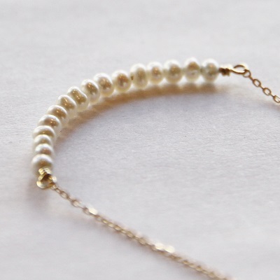 | <K18 Neige waterpearl bar pendant necklace> (ネイジュ淡水パールバーペンダントネックレス) 小粒で可愛らしい淡水パールををバー状のトップに、 シンプルながらも目を引くデザインネックレスに仕上りました。 可憐で純粋な印象のパールとK18ゴールドとの組み合わせが大人可愛い印象です。 シャツやワンピースなどのかっちりしたスタイルから、Tシャツなどのカジュアルスタイル、 またパーティーシーンまで幅広くお使いいいただけます。 女性の美を象徴する宝石でもある真珠。 また6月の誕生石でもある真珠はバースデーギフトとしてもおすすめです! |
