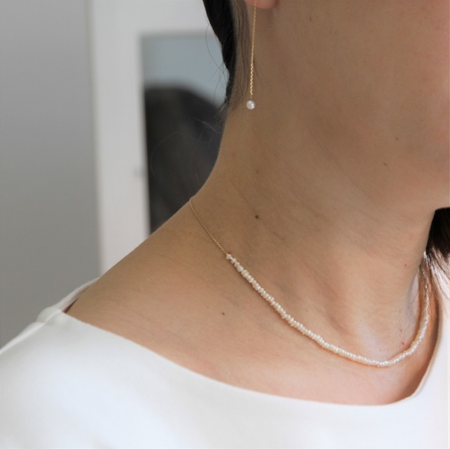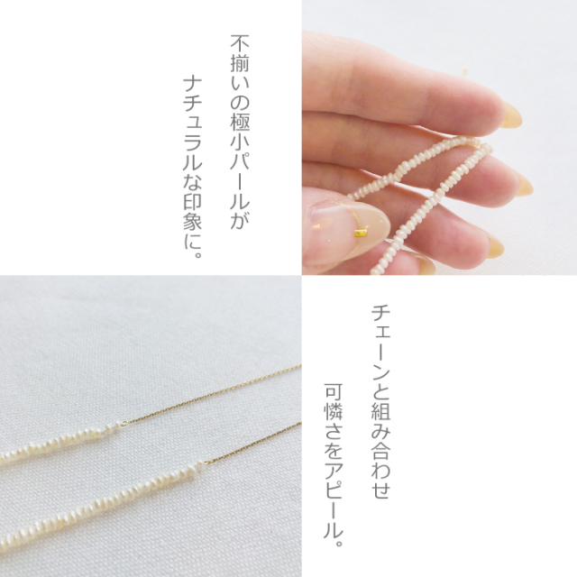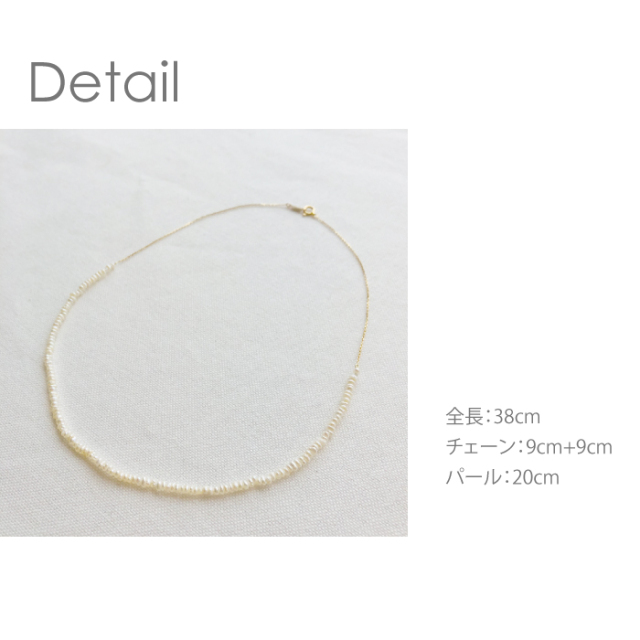 <K18 Neige waterpearl azuki necklace> (ネイジュ淡水ベビーパール小豆ネックレス) 人気の極小ベビーパールが入荷しました。 華奢なパールは他のネックレスとの相性抜群!1本でも重ね着けにも便利です。 ◇K18小豆チェーン(18cm)+淡水パール(20cm)全長38cm 後ろ姿にもこだわった一品。 チェーンと組み合わせる事により、後ろ姿に高級感UP ナチュラルな風合いがかわいいネックレスです。 |