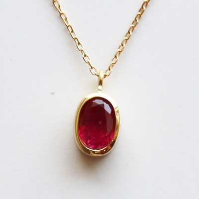 | <Only one Ruby pendant necklace/0.650ct> オンリーワンルビーペンダントネックレス/0.650ct 綺麗なルビーが入荷しました! オーバルカットの施された真っ赤なルビーを、K18ゴールドで囲うようにフクリン留めでセッティング。0.650ctのルビーがしっかりと存在感を感じさせてくれます。 宝石職人の手仕事で留められた、世界に一つだけのオンリーワンジュエリー、あなただけのとっておきのコレクションになること間違いなし! また、7月の誕生石でもあるルビー。バースデーギフトとしてもおすすめの一品です。 |