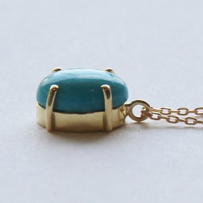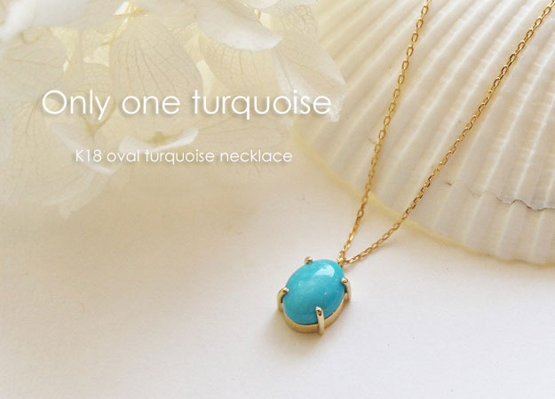 | <K18 Only one Turquoise pendant necklace> (オンリーワンターコイズペンダントネックレス カボションカットのターコイズを4本の爪でシンプルにセッティング。 K18ゴールドの華奢なチェーンに留められたターコイズが程よい存在感。 本物のターコイズと華奢なチェーンの組み合わせが大人可愛い印象♪ ありそうでない、洗練されたメルシィオリジナルデザインネックレスは、熟練された宝石職人の手仕事で留められた、世界にひとつだけのオンリーワンジュエリーです。 |