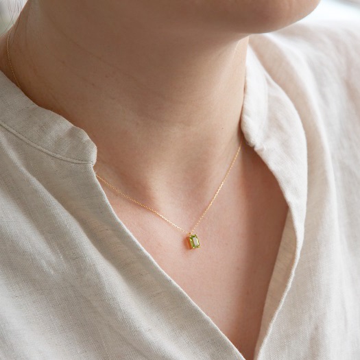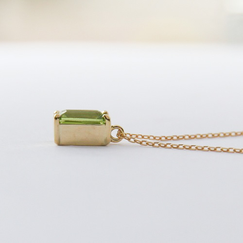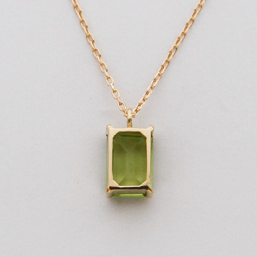 <K18 Only one Peridot pendant necklace> (オンリーワンペリドットペンダントネックレス 透明感の優れた綺麗なオリーブグリーンの天然石、ペリドット。 エメラルドカットが施されたストーンはきらびやかな輝きを放ちます。 華やかな印象の天然石をスタイリングのワンポイントに取り入れてみてはいかがでしょうか。 8月の誕生石でもあるペリドットはお守りのように身に着けて。 また、シンプルなデザインは誕生日ギフトとしてもおすすめです。 ありそうでない、洗練されたメルシィオリジナルデザインネックレスは、熟練された宝石職人の手仕事で留められた、世界にひとつだけのオンリーワンジュエリーです。 |