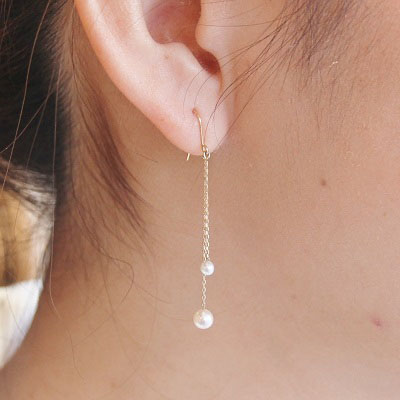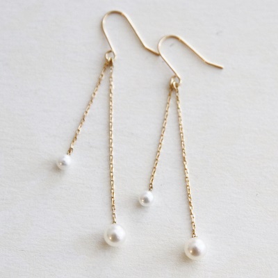 | <Little mermaid water pearl double stones hook pierce> リトルマーメイド淡水パールダブルストーンフックピアス 2.0mm珠と4.0mm珠の小さな淡水パールを長さの違うK18チェーンにセッティング。 2つの淡水パールが耳元で遊んでいるかのようにゆらゆらと揺れ、清楚で可愛らしい印象です。 淡水パールは艶・テリ・形共に高品質なものだけを抜粋しました。 大人な印象のパールもプチサイズで可愛らしさをプラス。 シンプルなデザインですので、他のジュエリーと合わせやすく、普段使いからパーティーシーンまで幅広く活躍してくれるピアスです。 |