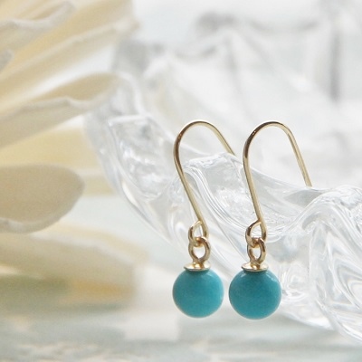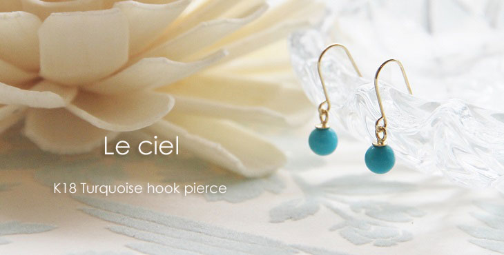 | <Le ciel turquoise hook pierce> ル・シエルターコイズフックピアス 鮮やかなスカイブルーのターコイズ(トルコ石)を、K18フックにシンプルにセッティング。 はつらつとした爽やかなブルーが印象的、かつ大人可愛いピアスに仕上がりました。 大地の恵を受けた天然ターコイズは存在感抜群! 可愛らしいけど、やっぱり本物を身につけたい!そんな大人の女性にピッタリの一品です。 旅のお守りや、災から身を 守るお守りとして身につけられて身につけられているターコイズ、また12月の誕生石でもあるターコイズ。バースデーギフトとしてもおすすめです! |