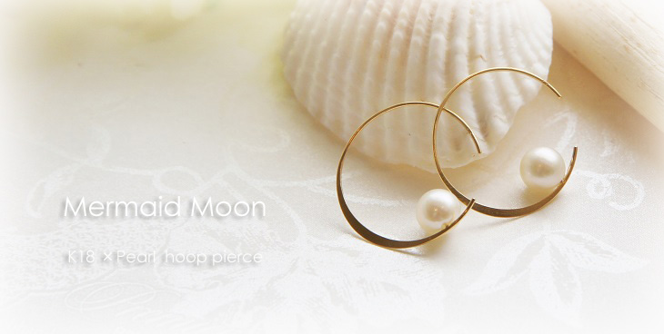 | <Mermaid moon akoya pearl hoop pierce> マーメイドムーンあこや真珠フープピアス K18ゴールドのハーフフープピアスにアコヤ真珠をセッティング。 ちょこんと乗ったパールが清楚で大人可愛い印象♪ K18フープ下部分には厚みを持たせ、ヘアライン加工を施しました。 きれいな月のフォルムは、程よく光の反射を受け、K18地金本来の輝きを感じさせてくれます。 敢えて淡水パールではなくあこや真珠を使用した贅沢な一品です。 |