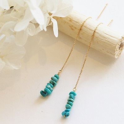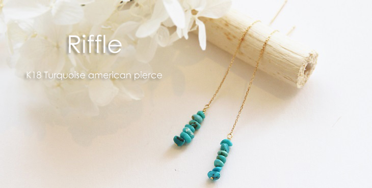 | <Riffle turquoise american pierce> リフィルターコイズアメリカンピアスピアス 鮮やかなさざれターコイズをバー状のトップに、 シンプルながらも目を引くアメリカンピアスにお仕立てしました。 大地の恵みを受けたターコイズのカラーと K18ゴールドとの組み合わせが何とも夏らしい印象です。 耳元で揺れるデザインは視線を集める優秀ピアス。 リネン素材のシャツやワンピース、Tシャツなどのカジュアルスタイルから、 夏のパーティーシーンまで幅広くお使いいいただけます。 旅のお守りや、災から身を守るお守りとして身につけられて身につけられているターコイズ、 また12月の誕生石でもあるターコイズ。バースデーギフトとしてもおすすめです! |