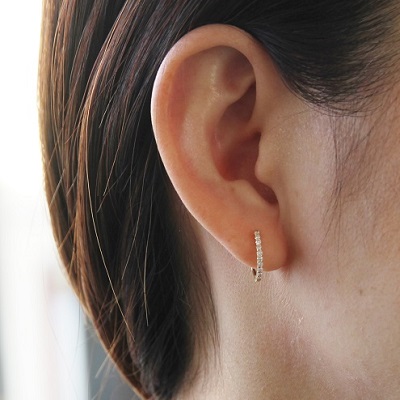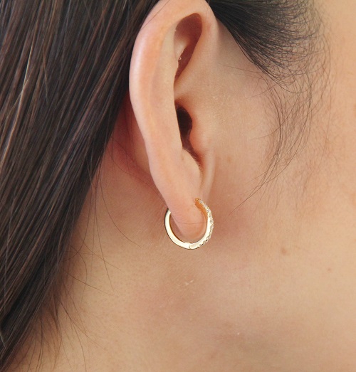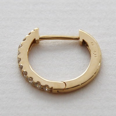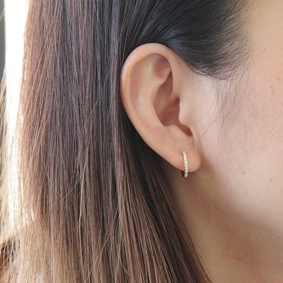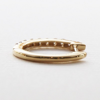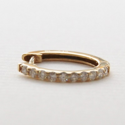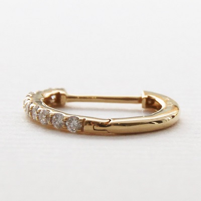 <K18 Meteore diamond half eternity hoop pierce> ダイヤモンド20石、合計0.20カラットの上品なミニフープピアス。 細くて華奢な印象ながらも、キラキラと光り輝くダイヤモンドと、しっかりとした幅が、華奢な中にも高級感が感じられるピアスです。 ダイヤモンドは透明感があり、動くたびにキラキラと本物ならではの輝きがお楽しみいただけます。 控えめなミニフープならオフィスにも◎。 大切な方への贈り物にもおすすめの一品です。 |