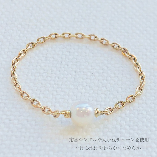 当店人気の丸小豆チェーンリングに淡水パールを組み合わせました。