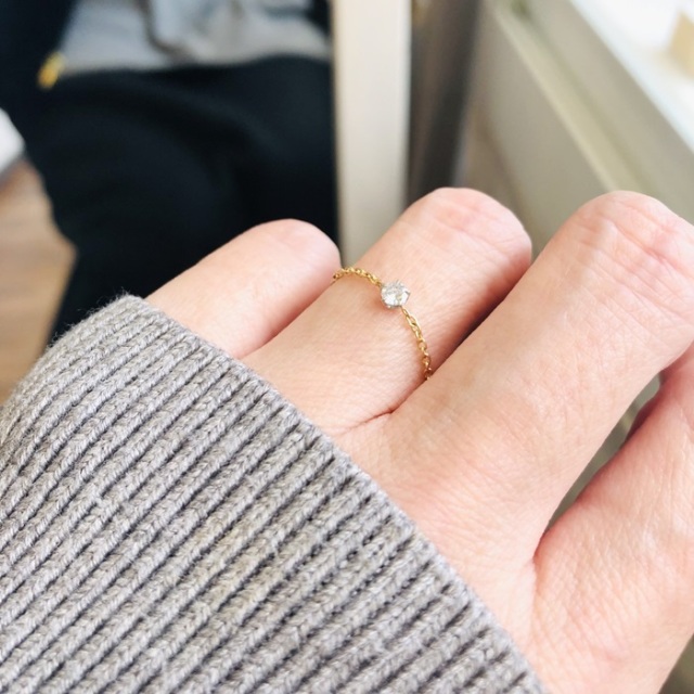 0.1ctのダイヤモンドをシンプルに留めたチェーンリングです。
