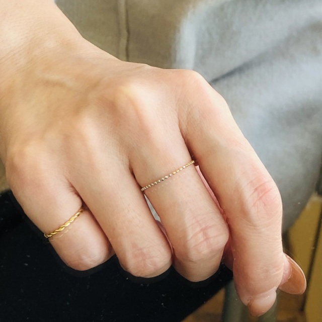 肌身離さず身につけられるスキンジュエリーとして、また、トレンドの重ね着けにおすすめしたいリングです。