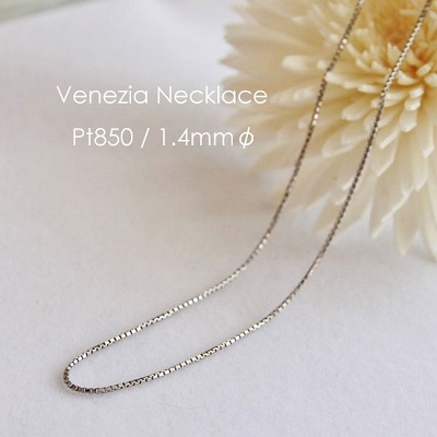 <Pt850 ベネチアチェーンネックレス(1.4φ×1.4mm幅)> 定番のチェーンネックレス【ベネチア】 定番人気のベネチアチェーン。ダイヤモンドやストーンの輝きを邪魔することのないシンプルなデザインです。 36cm~80cmからご希望の長さをお選びくださいませ。 長さ調節が可能なアジャスター丸カンの取り付けも選択可能です。 当店のチェーンネックレスは、安心・安全な日本製です。 上質な素材をお求めやすい価格にて、品揃え豊富にご紹介させていただきます。 |